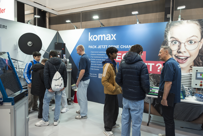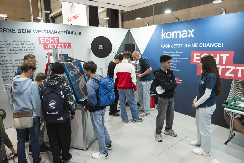 The Komax Group was once again exhibiting at this year's fair, offering visitors insights into the world of automated wire processing. Employees and trainees provided practical information about various training paths, presented innovative solutions, and demonstrated how state-of-the-art technology is opening up new career fields in the industrial sector. Direct interaction with Komax experts, whether through hands-on activities or personal conversations, enabled young visitors to the fair to obtain comprehensive information about numerous career opportunities within the Komax Group.